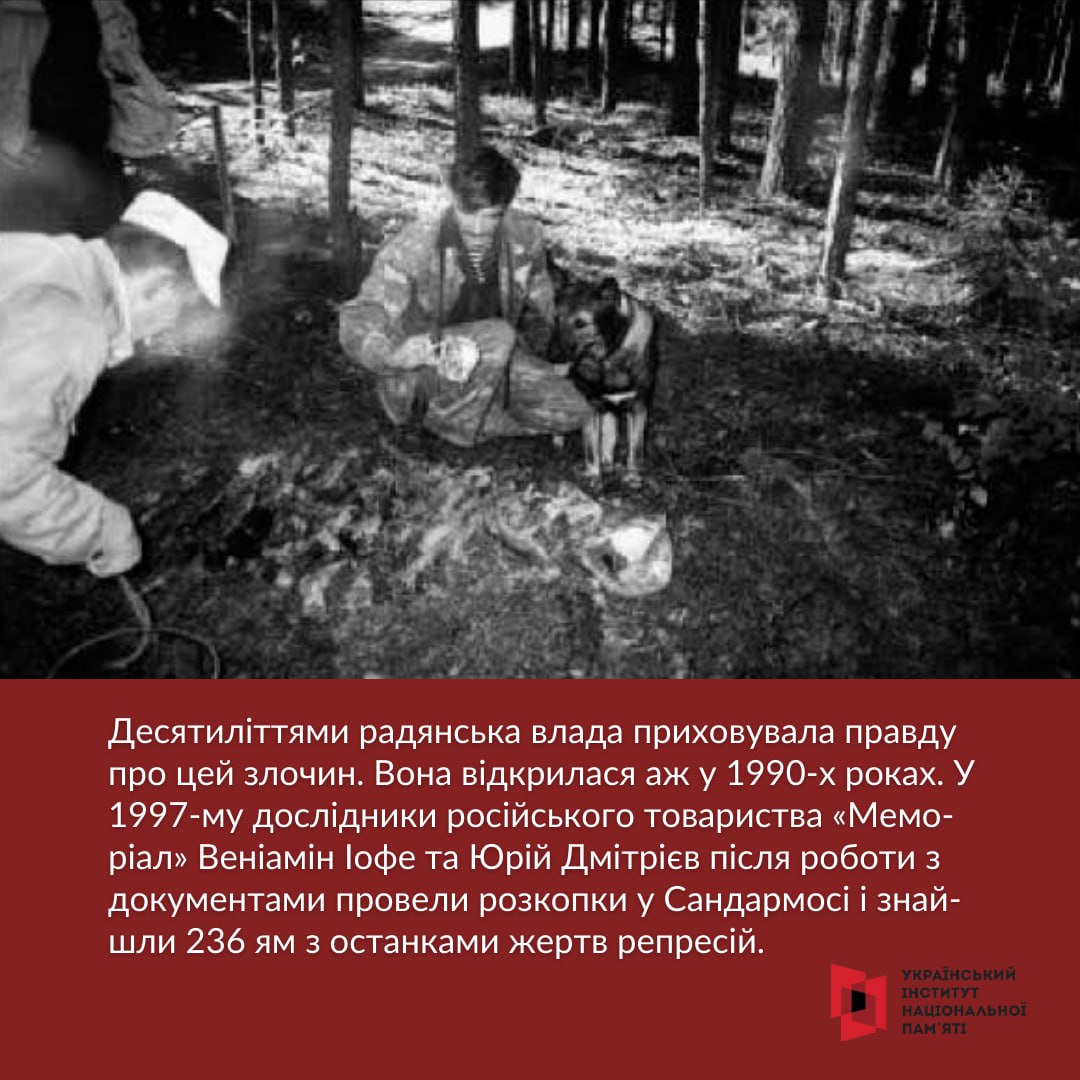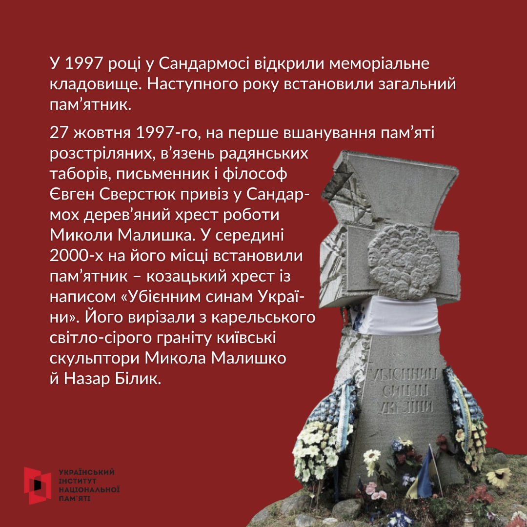 За часів незалежності розташоване на далекій півночі в Росії урочище Сандармох стало важливим для українців місцем памʼяті про жертв Великого терору. Українські дисиденти, дослідники, історики щороку відряджали туди делегацію на вшанування памʼяті, паралельно досліджуючи злочин, що там стався.